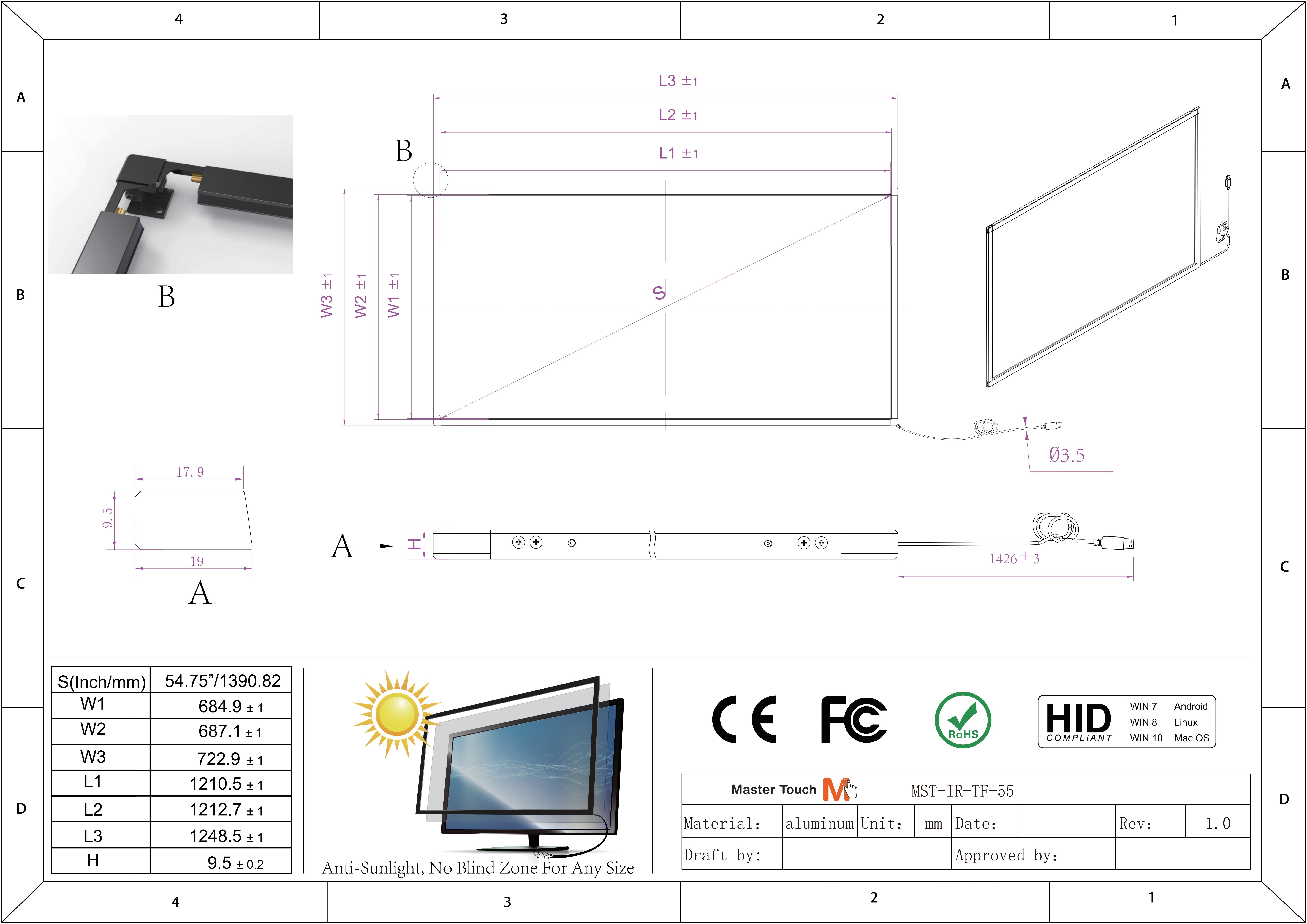 Master Touch IR (Infrared) Touch Frame is a high-end multi-point infrared touch screen technology with perfect combination of tradition and innovation. Our touch screen has the features of fast reaction speed, strong anti-environment light ability, good stability and easy integration; With the function of plug and play and without driver, any non-transparent object can change the infrared light and realize the touch operation which is convenient for people to operate and use the digital life and brings the greatest convenience and interactivity to life.